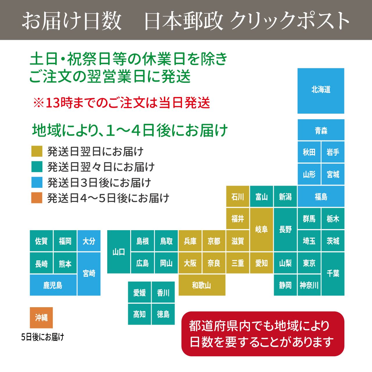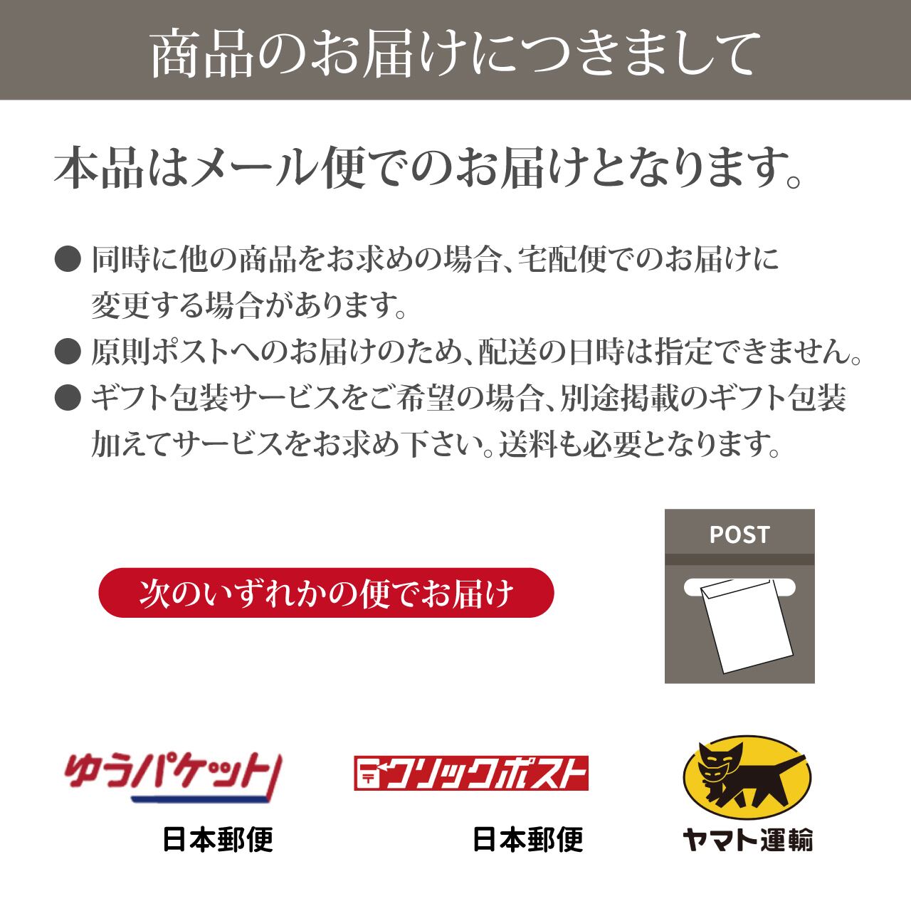 原則ポストへのお届けのため、配送の日時は指定できません。