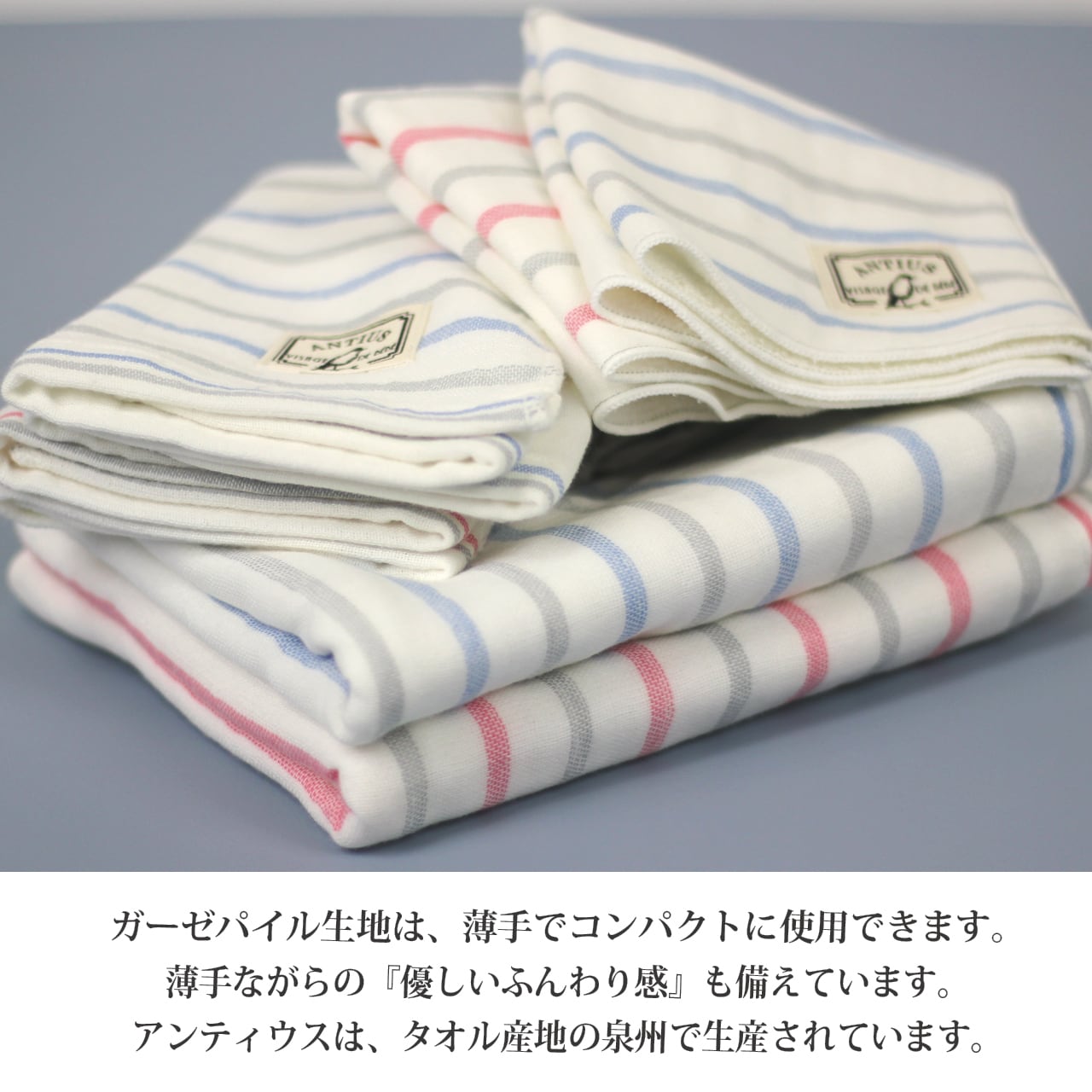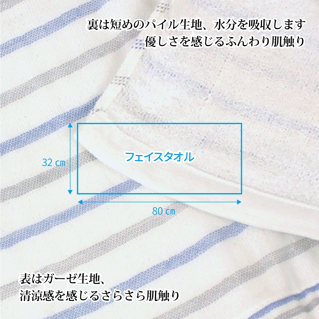 使い心地は、表ガーゼ・裏パイルの生地で、薄手で使い易く、吸水力もあります。ガーゼ生地特有のさらりとした優しい肌感覚を感じられます。